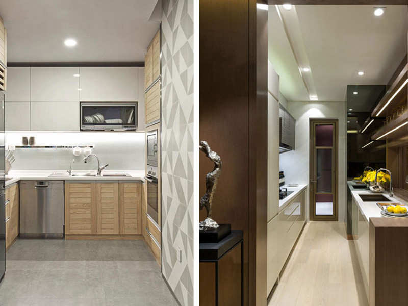 3、制作一個(gè)異形柜放置到拐角處,這樣讓拐角柜變成口小里大的普通柜子,使用起來(lái)也非常方便,而且拐角處的臺(tái)面的操作空間也變大了。