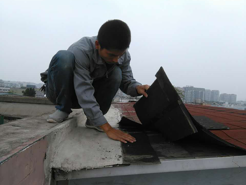 當它還沒有融化時,把線圈放在前面粘貼。鋪設時要從上坡到下坡,按照事先彈好的基準線鋪設,保證垂直。最后用噴槍加熱重疊的地方,保證粘接牢固。然后把雨水口堵上,灌滿水檢查。如果沒有滲漏,則合格,否則需要重新返工。