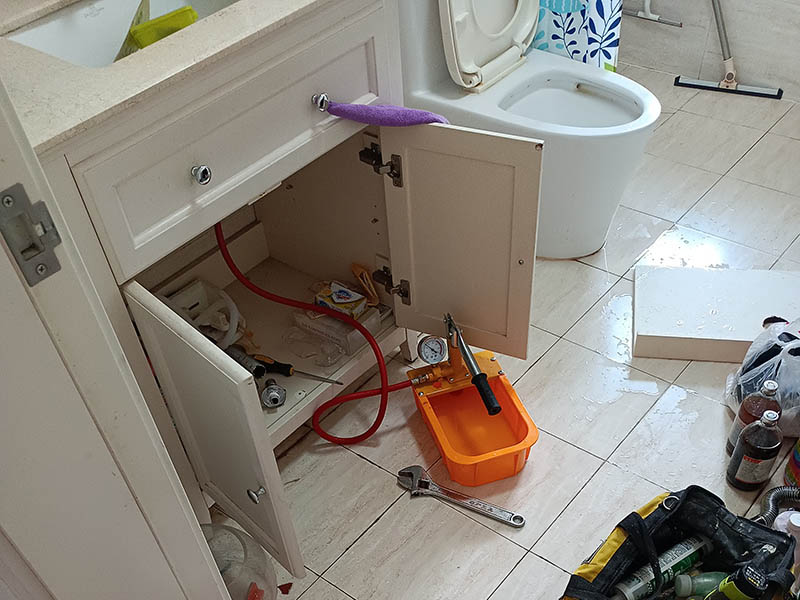 最后就是大家常見的壓力測試法:將洗手間管道閥門關(guān)閉后,連接相關(guān)儀器,保證整個回路的密閉性良好,通過打壓測試,利用漏水檢測儀來確定漏點位置,這是洗手間漏水檢測中快速、有效的方法之一。