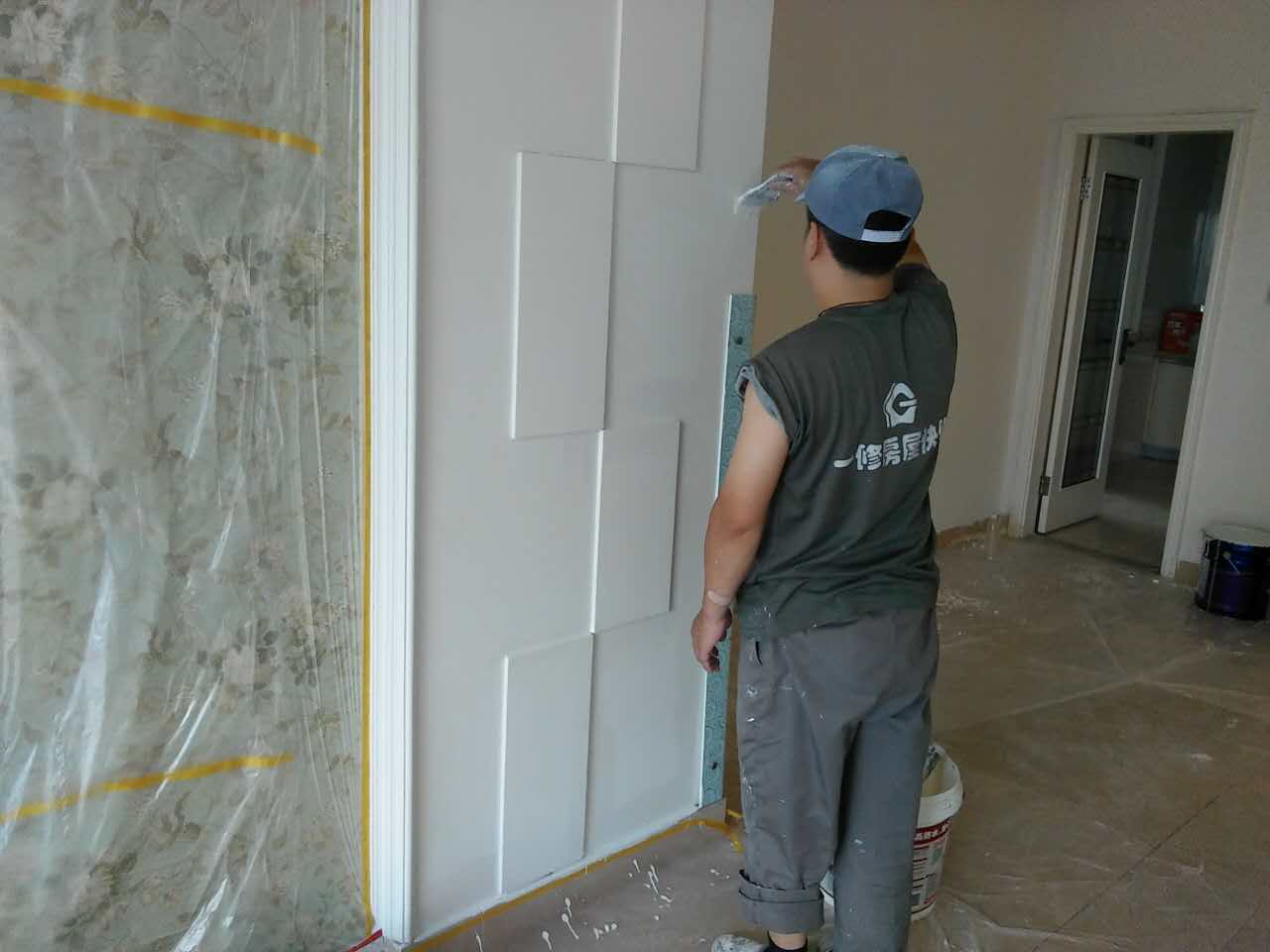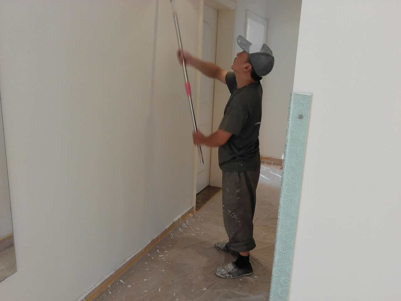 5、找補(bǔ):膩?zhàn)哟蚰ネ戤呏?,?huì)留有一些瑕疵(坑眼),一般情況下很難看清,只有刷過(guò)一遍漆之后才會(huì)很明顯,這時(shí)候需要找補(bǔ)了,注意找補(bǔ)一定要打磨平整,再用稍微多加一點(diǎn)水的底漆刷一遍,以免刷面漆的時(shí)候因?yàn)榕c其它墻面的吃水量不同而有色差。