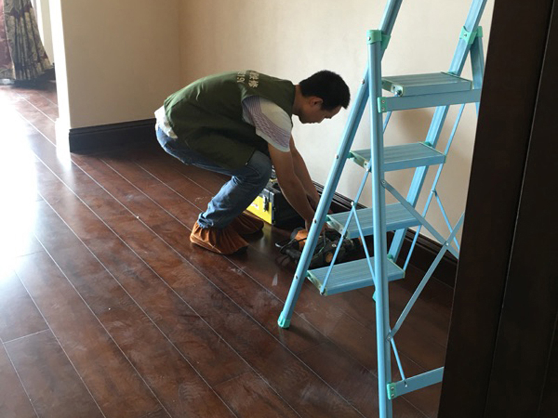 2.防潮保養(yǎng)不當解決辦法:不影響使用功能時,可待較長時間,等木地板的含水率與空氣中的相對濕度相平衡后,視情況采取拆、重鋪方案;或者全部拆開重鋪,調(diào)整分段縫和相鄰板塊預留伸縫。少量漆膜開裂,可進行補漆修復。如開裂面積較大,可磨平后重新油漆。如單塊木地板漆膜裂較長,可單塊更換木地板。